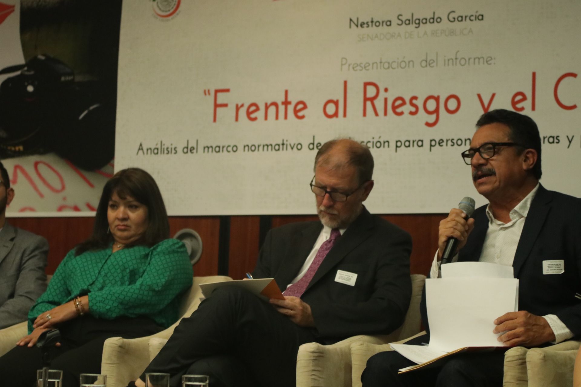 Las personas defensoras de derechos humanos y periodistas en México se encuentran bajo un ataque sistemático. La violencia generalizada, sumada a la violencia política a causa de su labor, las ha colocado en una compleja situación de riesgo. Se enfrentan a intimidación y hostigamiento, amenazas, agresiones físicas, detenciones arbitrarias y judicialización, hasta el asesinato; estos ataques provienen principalmente del Estado, y en segundo orden, de particulares, principalmente empresas y crimen organizado. Estas condiciones de riesgo se agravan con normas restrictivas que legalizan las violaciones de derechos, legislación que criminaliza el derecho a defender derechos humanos y una impunidad de más del 98% en agresiones contra personas defensoras y periodistas.