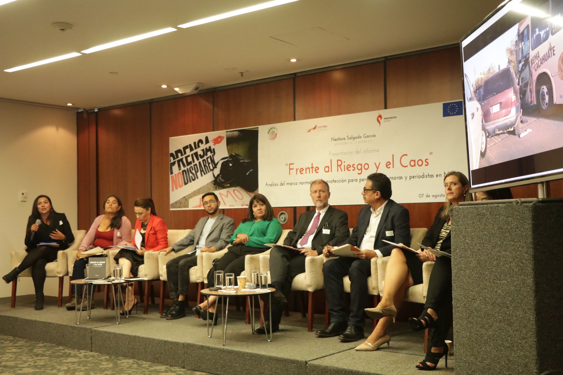 Resulta fundamental proteger la vida e integridad de la persona defensora/periodista, pero también generar medidas que garanticen continuar con el ejercicio del derecho a defender derechos humanos; hasta ahora, esto no ha sido posible. Frente al Riesgo y al Caos, es un informe realizado por Propuesta Cívica A. C., en él se analiza el conjunto de normatividades e iniciativas de protección en toda la República, pudiendo evidenciar la multiplicidad de leyes existentes con enfoques reactivos y diversos en materia de seguridad y protección.