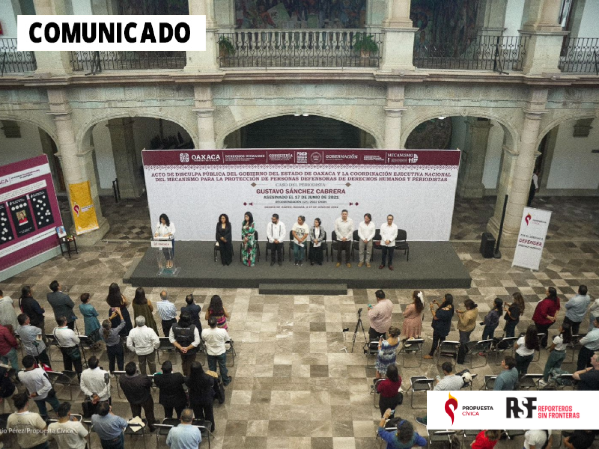 A finales de mayo de 2024, Propuesta Cívica y RSF celebramos reuniones con el Mecanismo Federal de Protección, la Comisión Nacional de Derechos Humanos, la Fiscalía Especial para la Atención de Delitos Cometidos contra la Libertad de Expresión (FEADLE), la Coordinación para la Atención de los Derechos Humanos de Oaxaca y la Fiscalía General de Justicia de Oaxaca para revisar punto por punto la atención que el Estado mexicano ha tenido en los rubros de investigación y reparación integral del daño en el caso.
