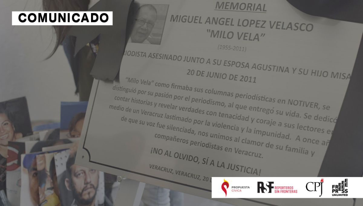 En el marco del décimo segundo aniversario del asesinato del periodista mexicano Miguel Ángel López Velasco, conocido por “Milo Vela”, muerto en Veracruz en 2011 al lado de su esposa y su hijo, Reporteros Sin Fronteras (RSF), Propuesta Cívica, el Comité para la Protección de Periodistas (CPJ) y Free Press Unlimited (FPU) realizan una jornada por memoria y justicia.